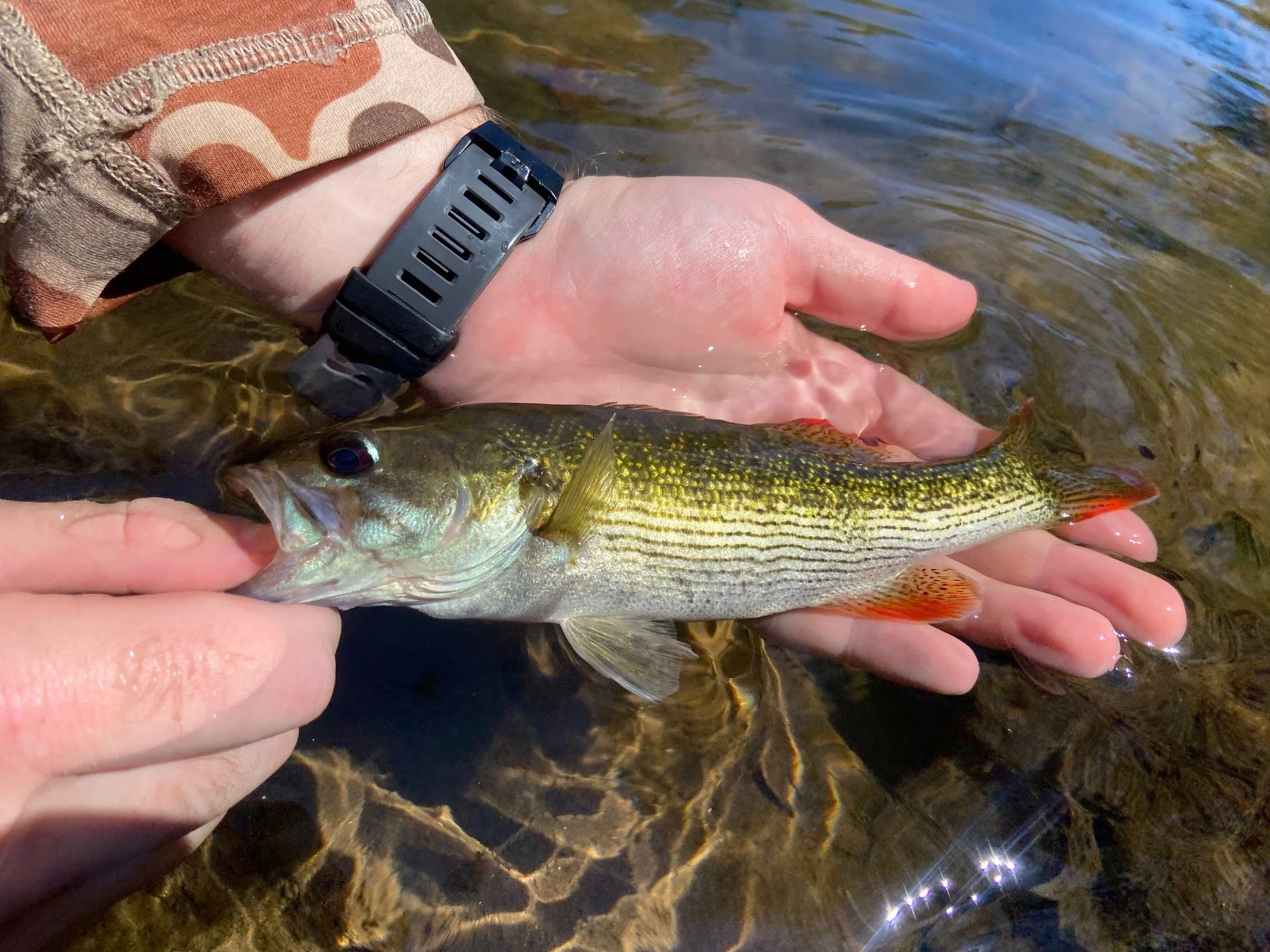 Our area is also home to three species of native Redeye bass. Although small, these native bass are spunky, colorful, and a blast to catch on a lighter rod. The best time to target Redeye bass in our area is April-September.